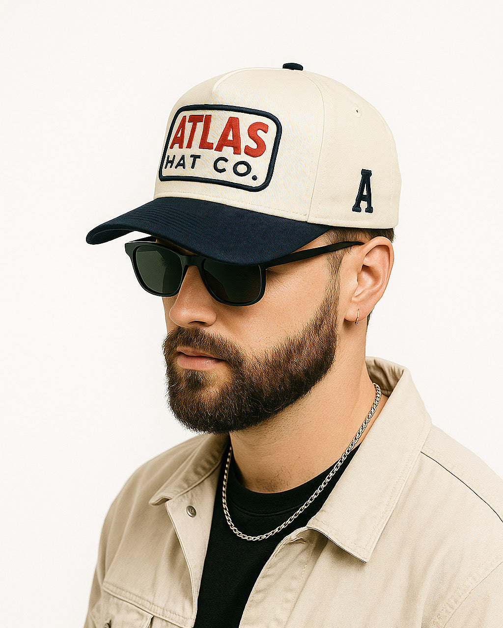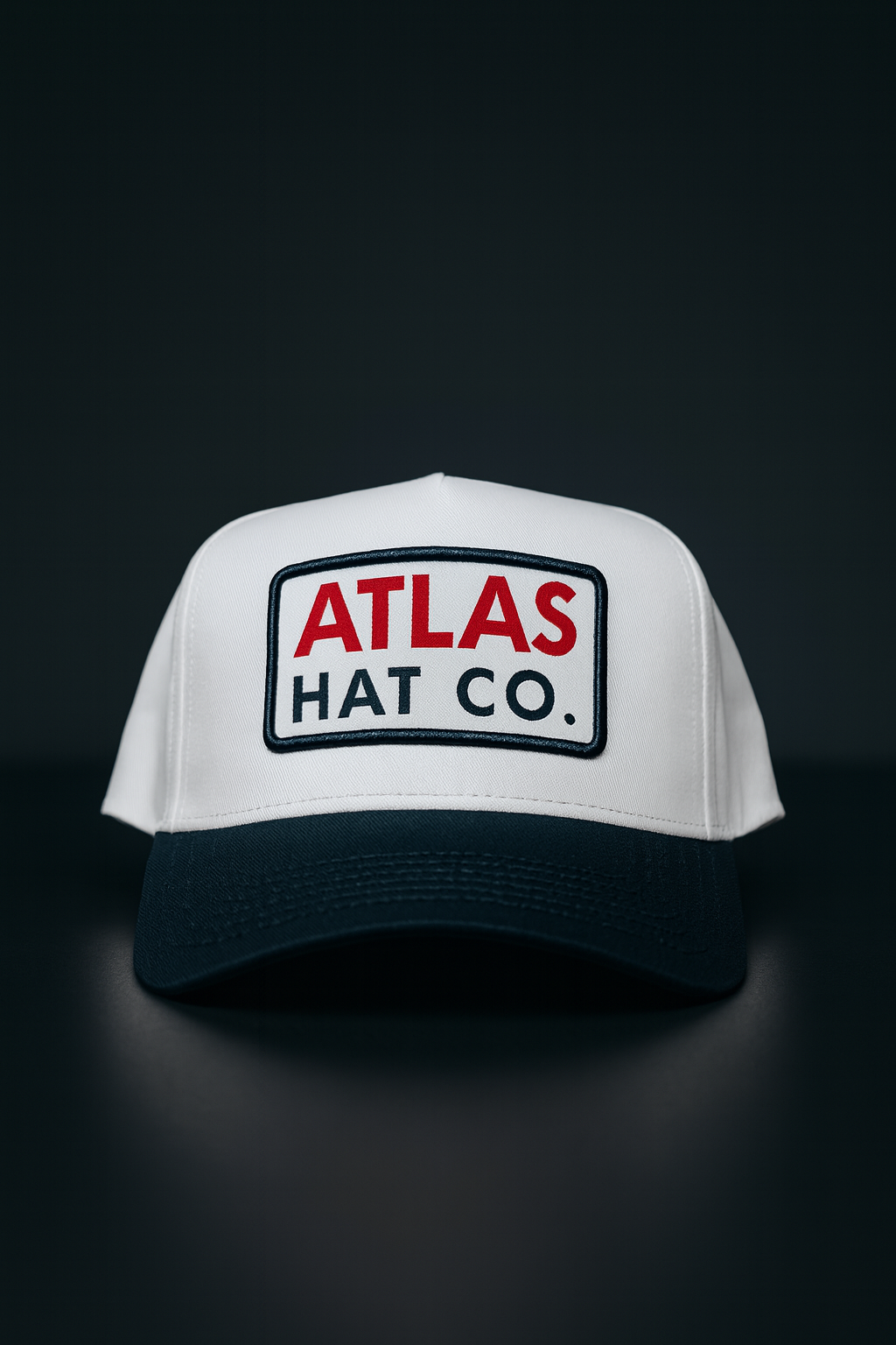 Clean lines. Bold presence. The Atlas Patriot Patch Hat brings throwback Americana energy to the modern streetwear scene. White crown meets navy brim, while the red and navy embroidered patch delivers a punch of classic varsity grit. Finished with the signature side “A” — unmistakably Atlas.